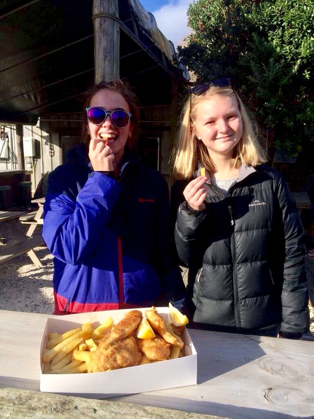 On the way home we stopped for another dose of ‘fush and chups’, which Annette claimed would be the best in the world as it was all freshly caught. She was not wrong, and we sat outside to eat it overlooking the sea.