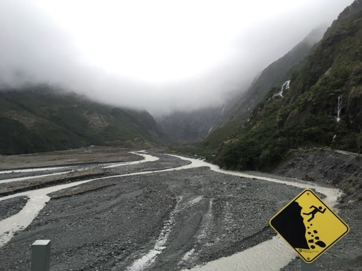 We reached Franz Josef, home to the famous glacier around midday and for once, stuck to our word of having ‘A Quiet Night In’. Here I went to a pizza party, where I had the pleasant surprise***of bumping into my lovely friend Tania who I met in Fiji, and also experienced the adventure of heading off on a hike to see the Franz Josef glacier, bravely fording a fast flowing river only for the heavens to open and park rangers to close the trail, turning us around and sending us back to wait for the bus in the driving rain.