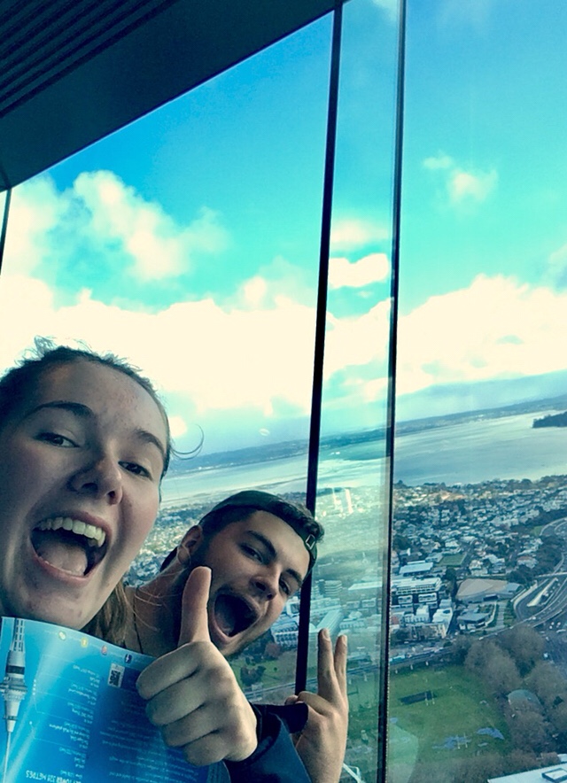 After five nights, the blessed day finally arrived when I was to leave our garlicky room for Thames, in order to rejoin Annette, Alice and Andrew, my relatives who had hosted me at the start. That morning, to mark the end of our career as a double act, Kevin and I decided to embark on a trip up the Auckland Sky Tower, taking advantage of a rare moment of sunshine in a place that rivalled the UK for wet weather. Like the Eureka Tower in Melbourne, this also had excellent, almost dizzying views, but this time they also came with an awkward photographer who I’m pretty sure mistook us for a couple, insisting on taking a picture of us, and the thrill of being in a tall building in an area where earthquakes are not uncommon.