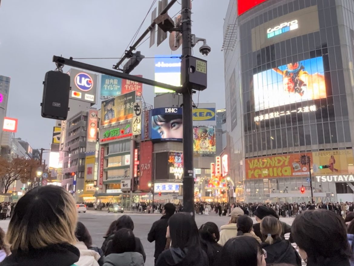 It was a crazy multi-sensory experience. Unlike Oxford Circus or Times Square, the surrounding billboards also come with loud audio. When the lights turned green, we fought our way across to the other side to a soundtrack of zaps, boings and animated product voiceover. It was intense and strangely combative. Suddenly ‘Animal Crossing’ had a whole new meaning, as everyone jostled their way to safety like panicked creatures in a David Attenborough documentary.